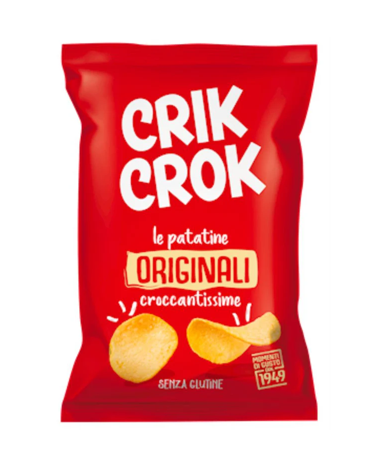 Tagliate a fette sottili, dorate e salate queste patatine Original della Crik Crok sono pronte a scrocchiarti in bocca, proprio come preannuncia già il nome. Deliziose nella loro semplicità, queste patatine sono perfette per chi ama il gusto classico.
